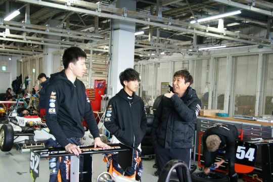 「今日はけっこう風が強いので、風に対する考え方。筑波とかだとあまり関係ないと思うのですが、鈴鹿だとすごく風に対して走り方が変わるので、それを簡単にアドバイスしたくらいです。(各選手経験を積んで落ち着いてきた?)そうですね、すごい個性的なドライバーが集まって、それがみんなで切磋琢磨してくれているので。いいところは吸収して、ダメなどころはみんなでロガー見ながら反省したりしているから。みんな雰囲気はすごいいいですよね。最終的にはライバルなので、スタートしちゃえばアレ(バトル)ですけれど」