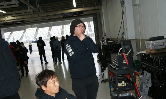 午後1時25分フォーメーションラップ開始、2台を欠いた45台が6キロのコースを1周してグリッドに整列。いよいよスタートかとピット内でも緊張が高まる中、グリッド後方でエンジンストールした車両が。なんと41番グリッドの石井だ。これによってスタート進行はフォーメーションラップからやり直し、レースは1周減算され、9周で行われることになる。石井は最後尾スタートに回され、ピット内ではちょっとだが弛緩した空気が漂う。