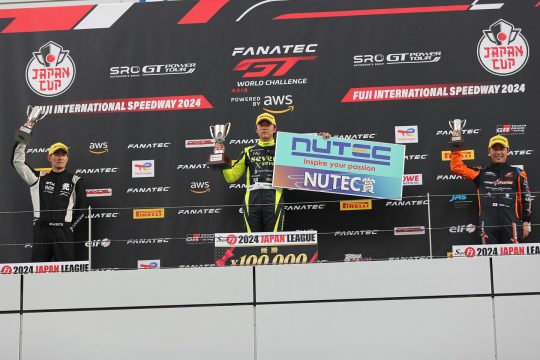ポディウムに戻って来た渡会はまずクルーと抱擁。おもむろにヘルメットを脱いだオーバーテイクショーの主役は満面の笑みを見せた。