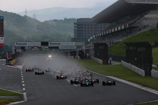 2024年JAF筑波/富士スーパーFJ選手権シリーズ地方選手権第5戦決勝は6月23日(日)に富士スピードウェイで開催され、トップが目まぐるしく入れ替わる12周のレースで、最後尾21番手スタートの渡会太一(FTK レブレーシングガレージ)がすべてのクルマをオーバーテイク、優勝を飾った。