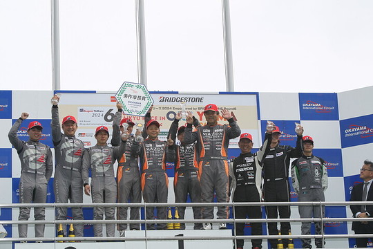 ENEOSスーパー耐久シリーズ2024 Empowered by BRIDGESTONE第6戦「スーパー耐久レースin岡山」は27日、岡山国際サーキットでグループ2の決勝を行い、ST-3クラスの15号車岡部自動車Z34(前嶋秀司/長島正明/銘苅翼/元嶋成弥)が総合優勝を飾った。