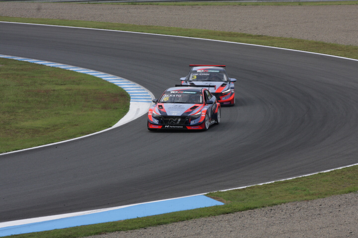 TCRジャパン第3戦レース6決勝は10月19日(土)、モビリティリゾートもてぎで行われ、フロントロウからスタートのチェ・ジョンウォン(KMSA MOTORSPORT N)が、オープニングラップからポールシッターの加藤正将(KMSA MOTORSPORT N)の背後につけてプレッシャーをかけ続け、9周目の第1コーナーで満を持してオーバーテイク、追いすがる加藤を振り切り優勝を飾った。