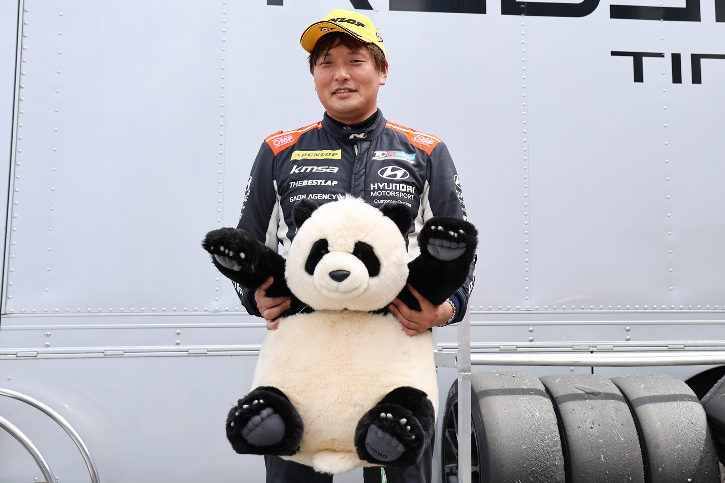 「序盤は3号車のトラブルが自分も同じシステムなので(問題が出ないか)確認をしていました。ただ大丈夫そうだと思って、そこから普通にアクセル踏んでいきました。(スタート直後に新倉が迫ったが?)アウディは出だしがいいので、そこは彼がうまく活かしてくれたのでよかったです、僕の愛車なので(笑)。明日のレースは3号車(の調子)が完璧に戻ったら、どうなるかわからないですね。(ところで、トランスポーターに飾られているパンダは何?)(笑)これは韓国のエバーランドという動物園のパンダです。うちのメンバーがエバーランドが好きだということでKMSAさんからプレゼントされたものです」