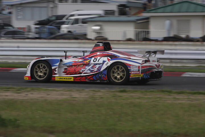 トップに立った岡田は2位山本との間合いを2周目0.465秒、3周目0.527秒とひろげていく。3位西濱はそこから2.4秒のギャップがあり、2台の一騎打ちの様相に。しかし続く4周目の第1ヘアピン立ち上がりで6位を走っていた菅原がクラッシュする。菅原はヘアピン出口でアウトにはらんでグラベルにはみ出しかけて、そこから反動で左へ巻き込むようにコースを横断して、右リヤからスポンジバリアにクラッシュし、コース上に跳ね返って停止。コースサイドにマシンを寄せようとしたが動けない様子でレースは赤旗中断となる。幸いなことに菅原選手に大きなケガはなく、チームメンバーによると翌朝辺りに筋肉痛が出るだろうとのこと。