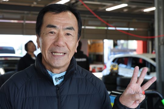 「12秒台が出ると思っていたのですけれど。ここのところ、この間のSUGOでの一件でトラウマになっていて、なかなかアクセルが踏めないのですよね。(SUGOでなにが?)練習でクラッシュして、マシンは振動が出ていて。それも直ってその後はいいタイムも出ていたのですけど予選でミスしたりして、ちょっと空回りがひどくて。この間Granz乗ったせいかな? 踏めるところが踏めなくなって。歳だからいろんな車種乗ると、戻すのが大変で(苦笑)。レースは前回0点だったのでチャンピオンは狙わないで、シリーズ3位以内は確定しているので、クルマをぶつけないように行きます」