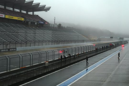 決勝は午後2時にセーフティーカー(SC)先導で、フォーメーションラップが始まった。雨は降ったりやんだりで、コースはウェット。ウェット宣言が出された。