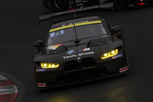 妹尾 「スタートして2コーナーでぶつけられて、スピンして内側に飛んでいきました。そこから必死に追い上げて、セーフティーカーが出る前にクラス2位でオーナー(MAKOTO)さんに渡しました。2台に抜かれて4位でしたが、見せ場を作れたので、内容的には悪くないし、オーナーさんをミニマムでなくて3~40分乗せることにしているので、妥当な順位なのかと思います」