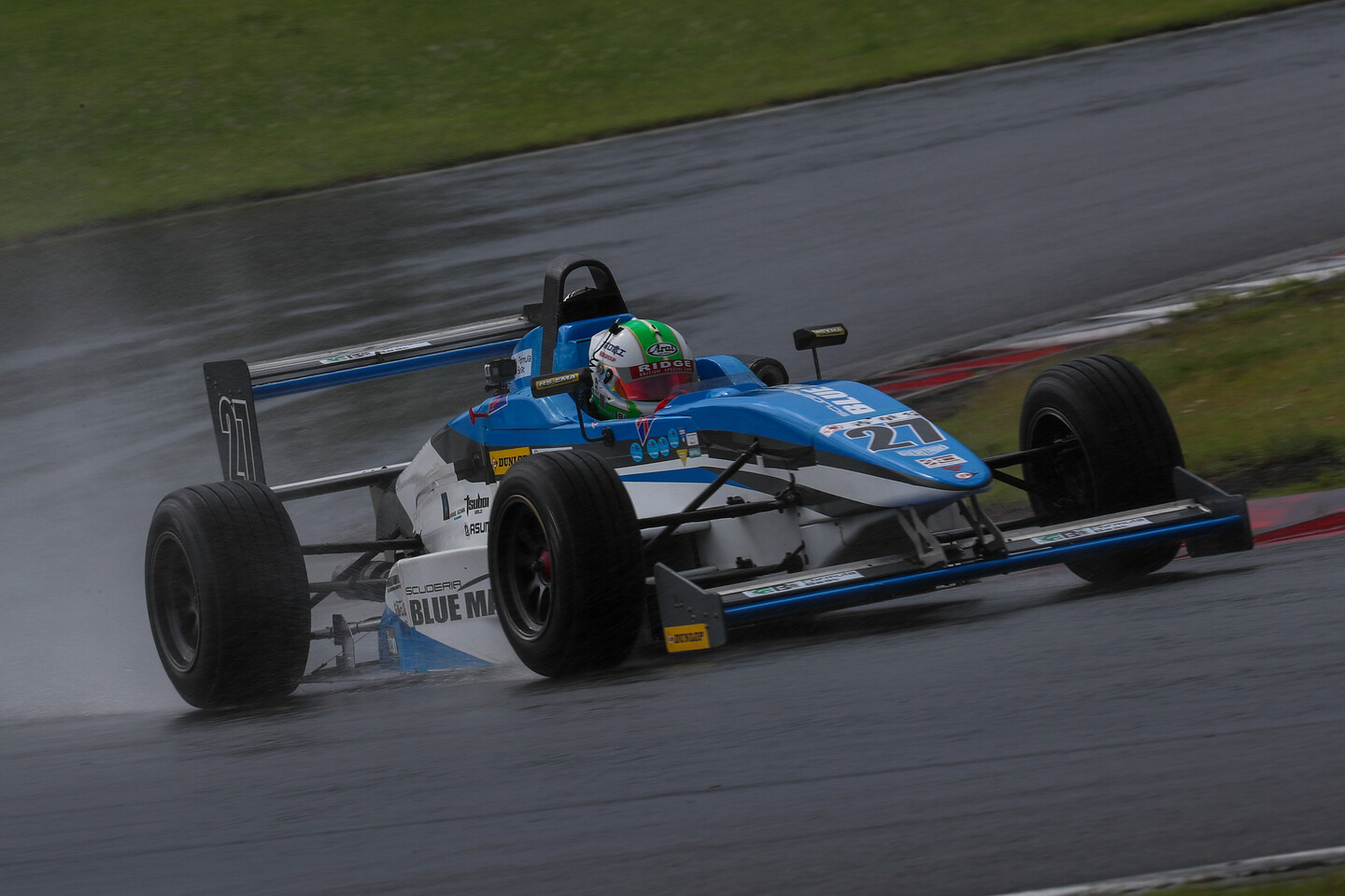 レース7決勝は午前9時15分より18周で行われた。昨夜からの雨は一旦収まっているものの、路面はまだ濡れており、競技団からウェット宣言が出されるなか、各車ウェットタイヤを装着してスタートに臨んだ。