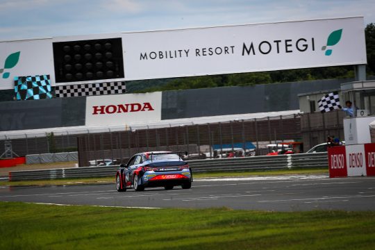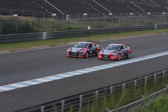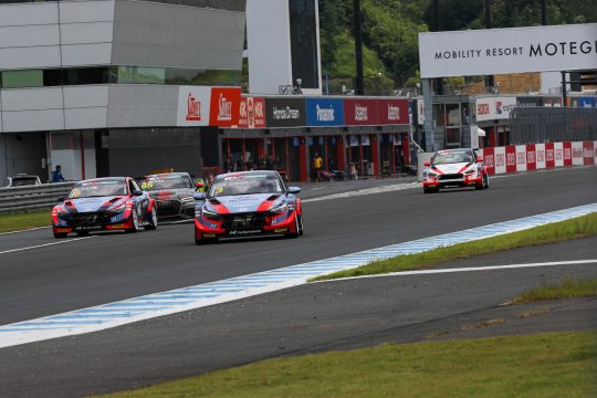 チェを先頭に4台がコースイン。加藤と新倉はコースを一周するとピットに戻り前後のタイヤを入れ替えるTCRJではよく見かける戦略を選択。ハイパワーFF車のためフロントタイヤの暖まりが早いので、少しでも前後タイヤの温度差を揃えたいという考え方だ。一方チェとキムはそのまま計測ラップに突入する。