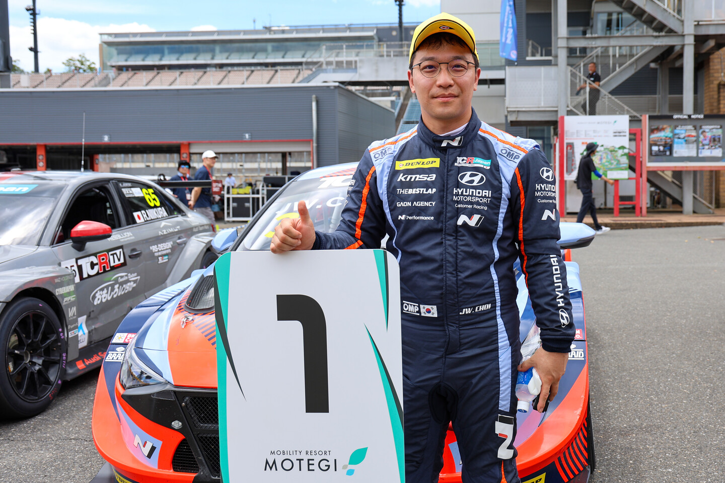 TCRJ第1戦公式予選は8月10日、モビリティリゾートもてぎで行われ、チェ・ジョンウォン(KMSA MOTORSPORT N)が2位のチームメイト、加藤正将(KMSA MOTORSPORT N)を0.091秒差に下してポールポジションを獲得した。