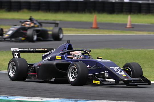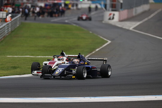 フォーミュラリージョナル全日本選手権第4戦は24日、モビリティーリゾートもてぎでレース10の決勝を行い、ポールポジションからスタートしたミハエル・サウター(G FORCE F111/3)が、スタートでトップに立つと、後続を大きくリードして優勝を飾った。