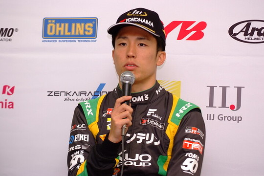 「このタイトルを取りたくてずっとやってきて、ようやく取れたので嬉しいです。最高の気持ちです。今年はチーム移籍という大きな変化があったので、送り出してくれたセルモにも、受け入れてくれたトムスにも感謝しています。特にトムスは昨年のチャンピオンチームなので、今年取らないとどっちのチームに対しても微妙な思いをさせてしまいます。どちらのチームにも結果で恩返しするしかないと思っていたので、いつも以上に気合が入った一年でした。その年にしっかりチャンピオンを取れて本当に良かったなと思います」