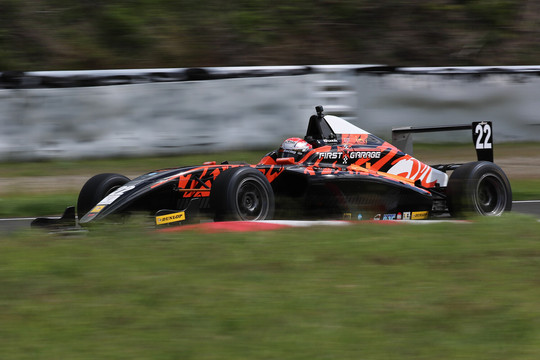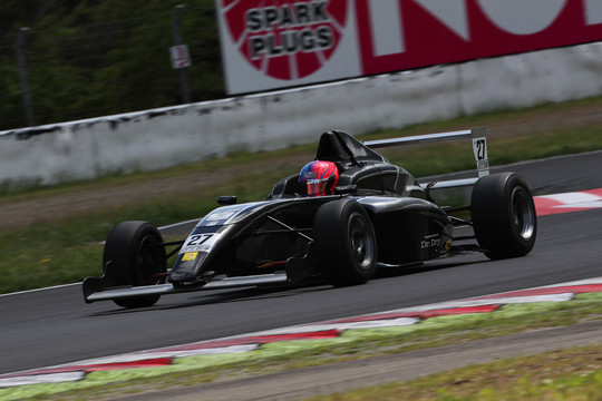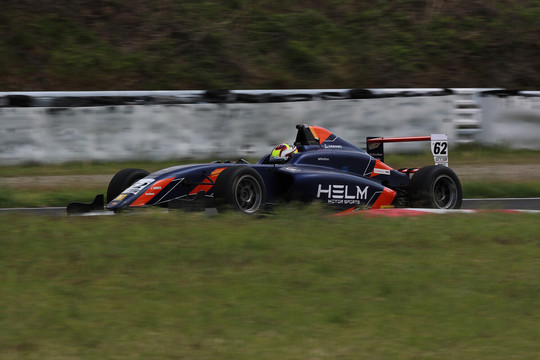 午前中の第3戦に引き続きスポーツランドSUGOは晴れ間が広がっているが、風が冷たく吹き抜け最終コーナー側から雨雲のようなものが近づいている。気温21度、路面温度42度のドライコンディションだ。午後1時40分、ポールシッターの酒井翔太(ファーストガレージF110)を先頭にフォーメーションラップ開始。グリッドに戻るとレーススタート。