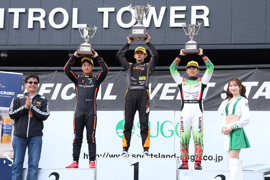 「GSTR GRAND PRIX F110 CUP」のRound2第4戦が5月11日(日)にスポーツランドSUGOで開催され、予選3番手からホールショットを奪った中井陽斗(HELM GSTR F110)がトップチェッカー、シリーズ初優勝を飾った。