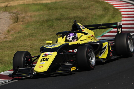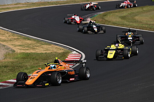 夏日となった日曜日。風はあるものの気温は30度を超えるなか、午後2時35分にフォーメーションラップがスタート。予選4位の大宮賢人(PONOS RACING F111/3)は、予選でタイヤを傷め、規定の2セットを超えたタイヤを使用するため、ピットからのスタートとなった。