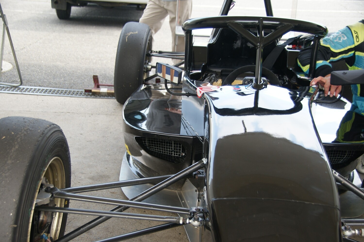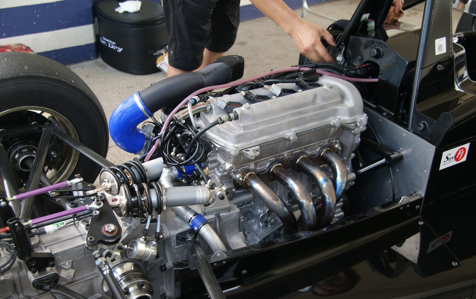 ラジエターインテークが現行型に比べて小さくクーリングが心配されたが伊藤の報告で水温80度とのこと。今回見ることはできなかったがサイドポンツーンの中がかなり気流に気をつかった造りになっているそうで、今日のコンディションで80度なら問題なかろうとの見解だった。