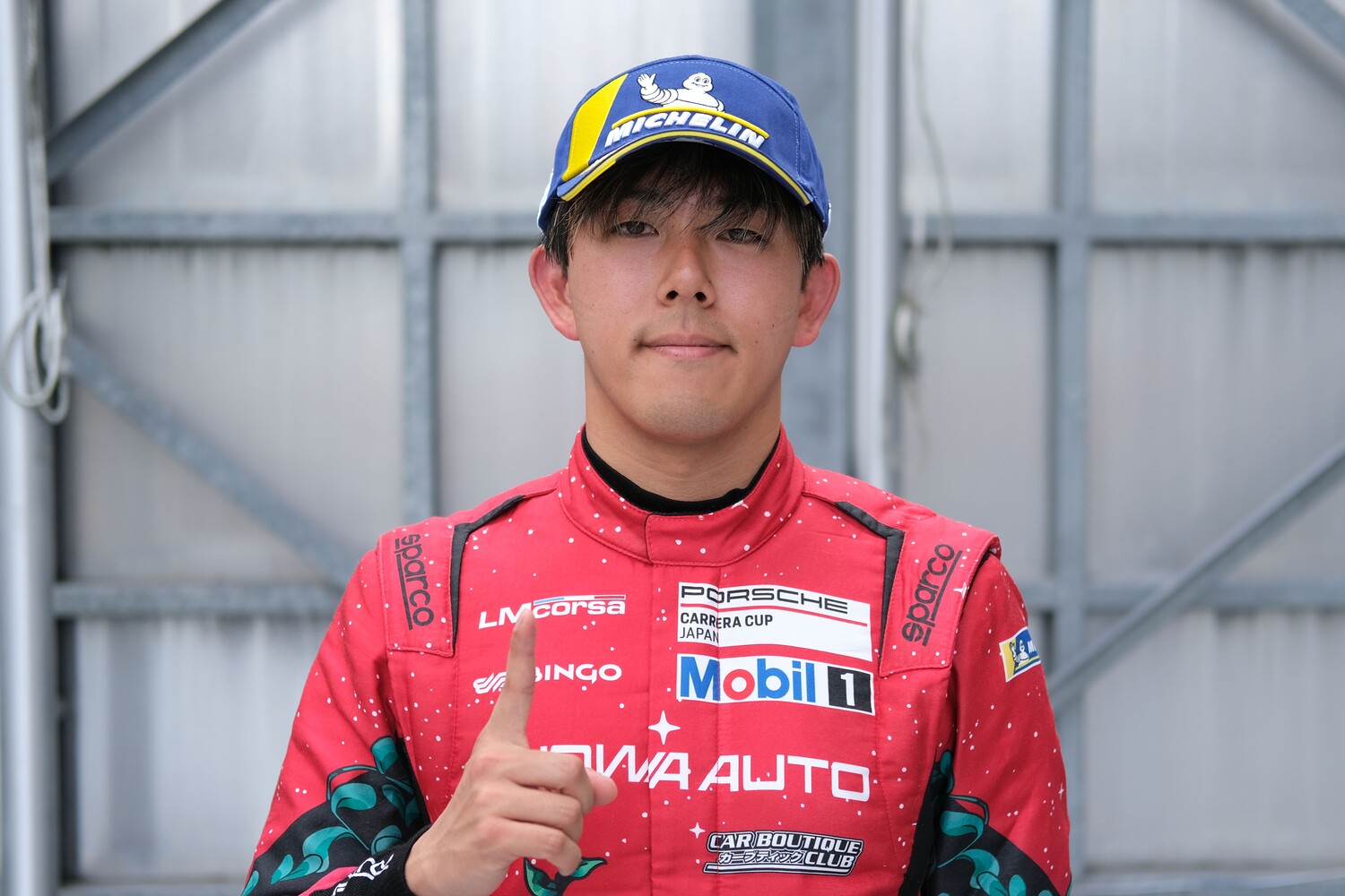ポルシェ・カレラ・カップ・ジャパン(PCCJ)第5戦が25日、岡山国際サーキットで行われた。ディフェンディングチャンピオンの伊東黎明(SHOWA AUTO with BINGO RACING)は予選3位スタート。スタートで2位に上がると、続くヘアピンでトップに浮上。そのまま後続を引き離し、セーフティーカー先導で終了するレースを制した。