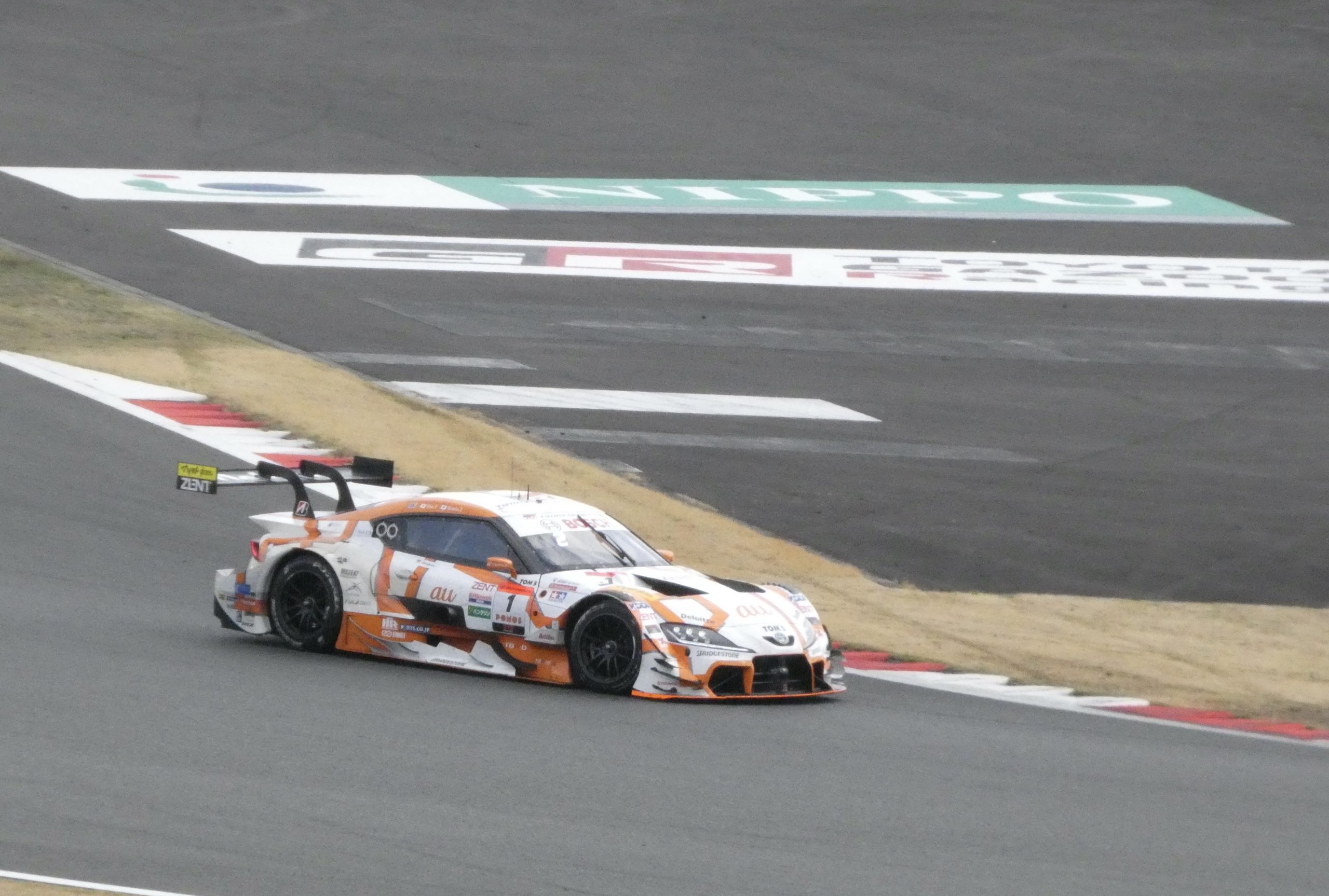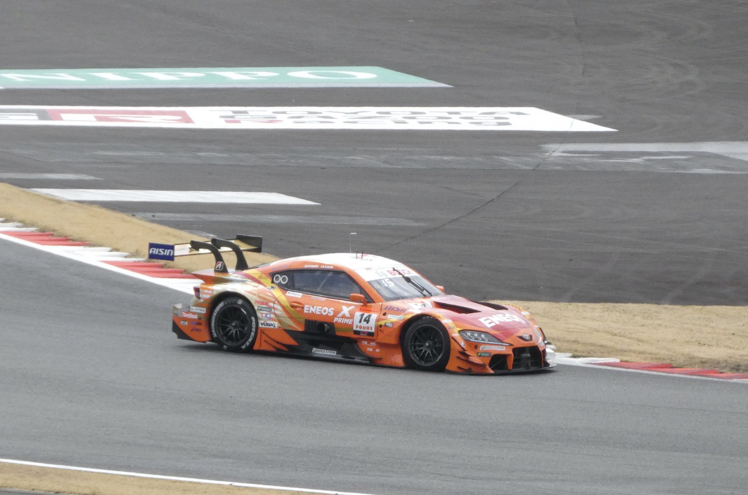静岡県小山町で行われている2025オートバックス スーパーGT公式テストは3月30日午後に最後の走行となるセッション4が行われ、GT500クラスは14号車ENEOS X PRIME GR Supra(大嶋和也/福住仁嶺)が1分27秒343でトップ。しかし二日目総合ではセッション3で1分27秒125を記録した1号車au TOM'S GR Supra(坪井翔/山下健太)がトップだった。