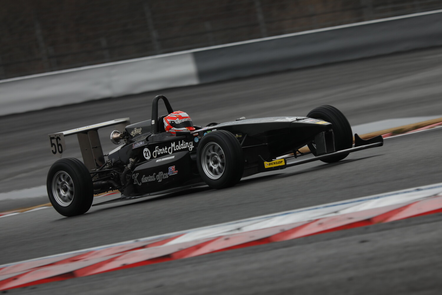 各車路面のコンディションを確かめるようにウオームアップを行い残り時間15分。伊藤が2分2秒982のトップタイム。2番手もてぎ・SUGOシリーズ5位の石井大雅(ファーストガレージ制動屋SⅡ)の3秒569、3番手鈴鹿・岡山シリーズ10位の宮本颯斗(MYST KKS2,KK-SⅡ)4秒322と続く。伊藤はさらにタイムを削り取り1秒717と2番手石井に0.976秒の大差をつける。3番手宮本に続いて酒井が4秒585で4番手に進出。しかし直後に箕浦が3秒320の3番手。箕浦は鈴鹿・岡山シリーズ3位だ。続いて板倉慎哉(AMORE with Racing F)が3秒567で4番手、さらにもてぎ・SUGOシリーズ4位のYOSHIDA KODAI(T's TECHNO RF)が4秒032で5番手と立て続けにタイムを出して宮本6番手、酒井7番手にドロップ。3台が出走のジェントルマンクラスは本間隆史(MATRacingPJ10V)が総合13番手でクラストップだ。このタイミングでただ一人スリックタイヤでコースインした武者利仁(KF MOTORSPORT KKS-2)がピットに戻りレインタイヤに交換、ギャンブルに失敗した形になった。