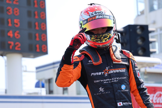 5周目、トップ酒井と2位津田は1.539秒差、3位秋山はそこから2.923秒差とレースはファーストガレージ勢が1-2体制を構築し後続を引き離していく構図に。7周目には酒井が58秒769のファステストラップをマークして津田を2秒以上引き離す。3位秋山はさらに4秒後方だ。この周相田は本間を攻略、7位にポジションアップする。次なるターゲットは0.555秒前方の草野。そのチャンスは8周目に訪れて第2セクターで草野をオーバーテイク、相田はスタートと同じ6位まで順位を戻した。