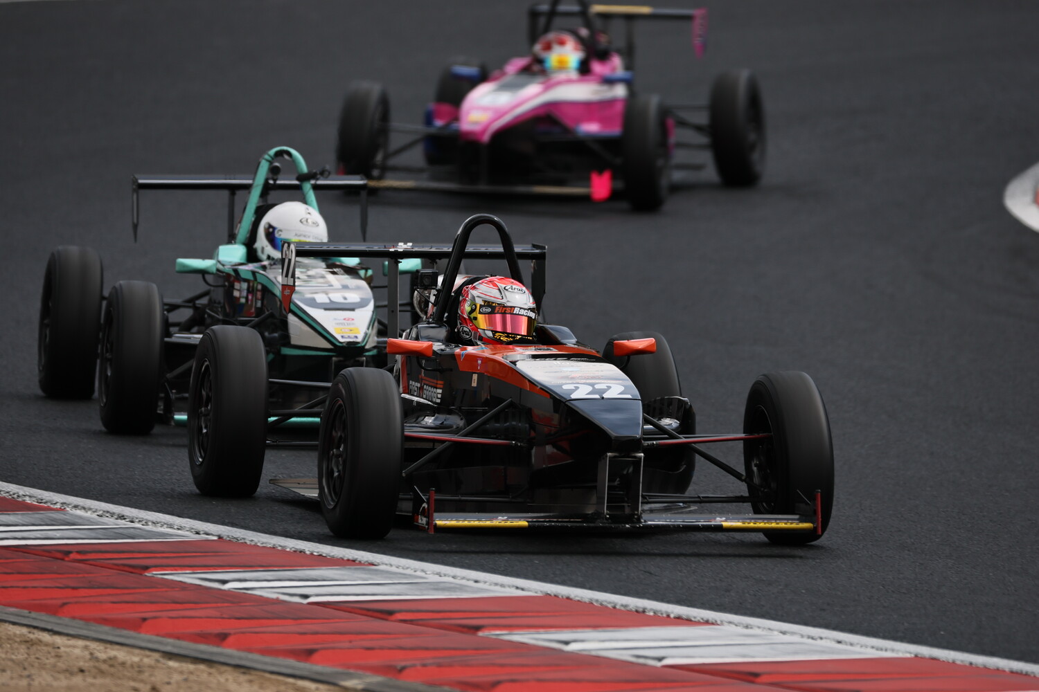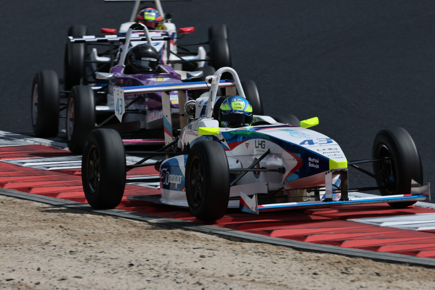 SCは2周を回ってピットイン。レースは3周目から始まった。素晴らしいSCスタートを決めた酒井翔太(ファーストガレージ制動屋)が吉田のリタイアで2位に上がった西田光来(FTK・REV RACING GARAGE)を大きく離してコントロールラインを通過。3位には箕浦稜己(MYST SEIDOYA KK-SII)が続くが、SCスタートを決めた杉田悠真(LAPS with REV RACING)が1コーナーで箕浦を攻略して3位に浮上。杉田はさらにアトウッドで西田のミスに乗じて2位まで上がった。