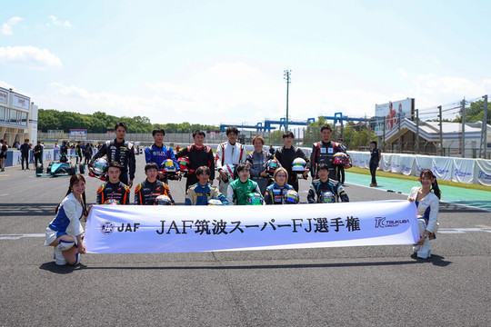 通常だとレーススタートの10分前ごろに始まるコースインだが、本大会では毎年レース前のセレモニーがあり、スタート30分前の午前11時55分にコースイン開始。マシンをグリッドに並べたところでドライバーはマシンを降りてヘルメットを手にコントロールライン上に整列する。選手を前にしてまずは歌手「RAN」による国歌独唱が行われ、その後、ドライバーの前にレースクイーンが持つ「JAF筑波スーパーFJ選手権」のバナーを置いての集合写真撮影が行われた。その後ドライバーがマシンに搭乗すると、アナウンサーによるドライバー紹介が始まり、普段のレースの雰囲気が戻ってくる。