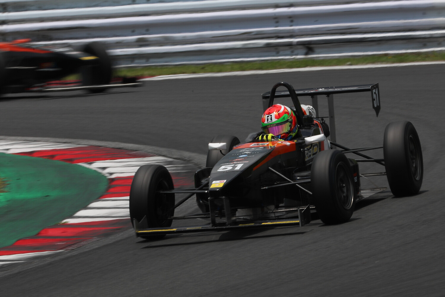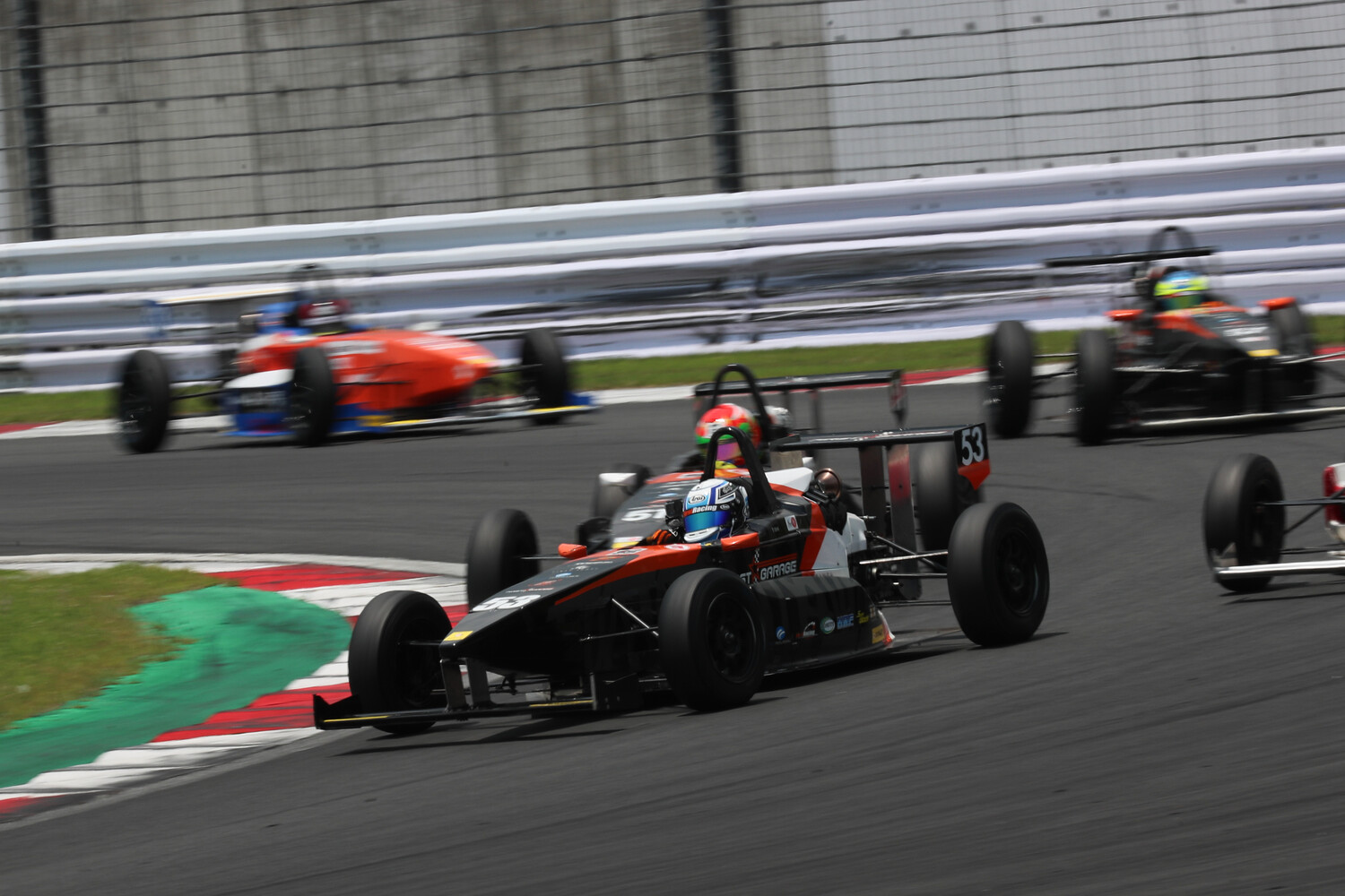 2025年JAF筑波/富士スーパーFJ選手権シリーズ地方選手権第4戦決勝が6月29日(日)に富士スピードウエイで開催され、スタート直後のクラッシュでセーフティカー(SC)が出るという展開のレースで箕浦稜己(MYST SEIDOYA KK-SII)が終始リード。一度もトップを脅かされることなく12周を走り切り優勝した。