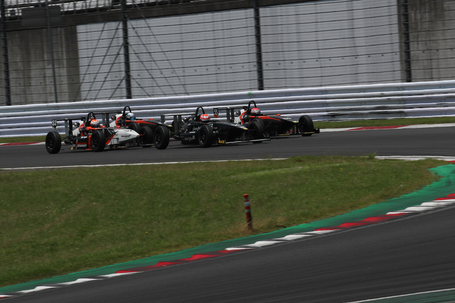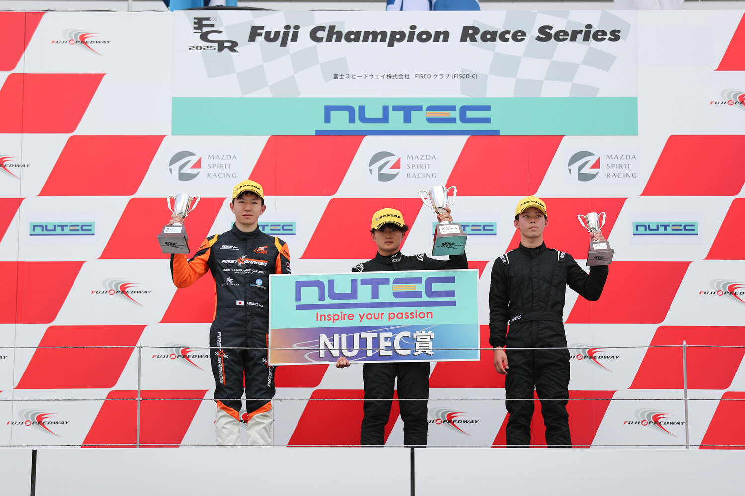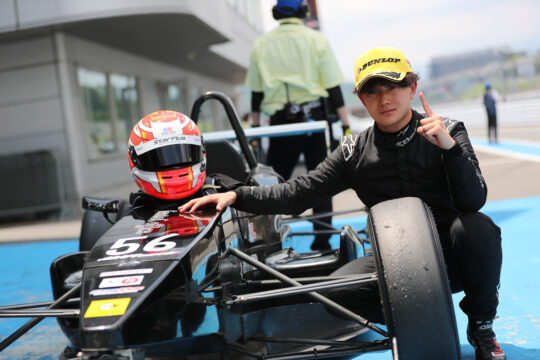 レース終了時点で気温30度という厳しいコンディションになり、各選手は汗だくでポディウムに戻ってきたが、そんな中でも16歳の箕輪は溌剌とした表情で表彰台に上がった。今年鈴鹿/岡山シリーズでS-FJにデビューし、開幕戦鈴鹿で9位、第2戦岡山で5位を獲得しているが、初の表彰台が優勝ということになった。