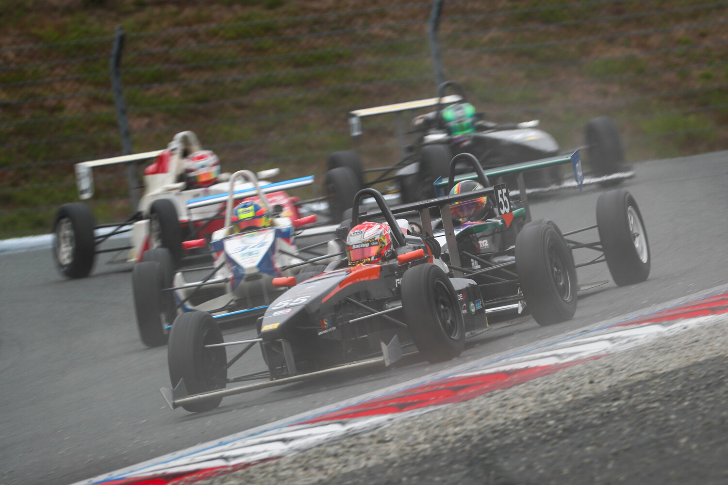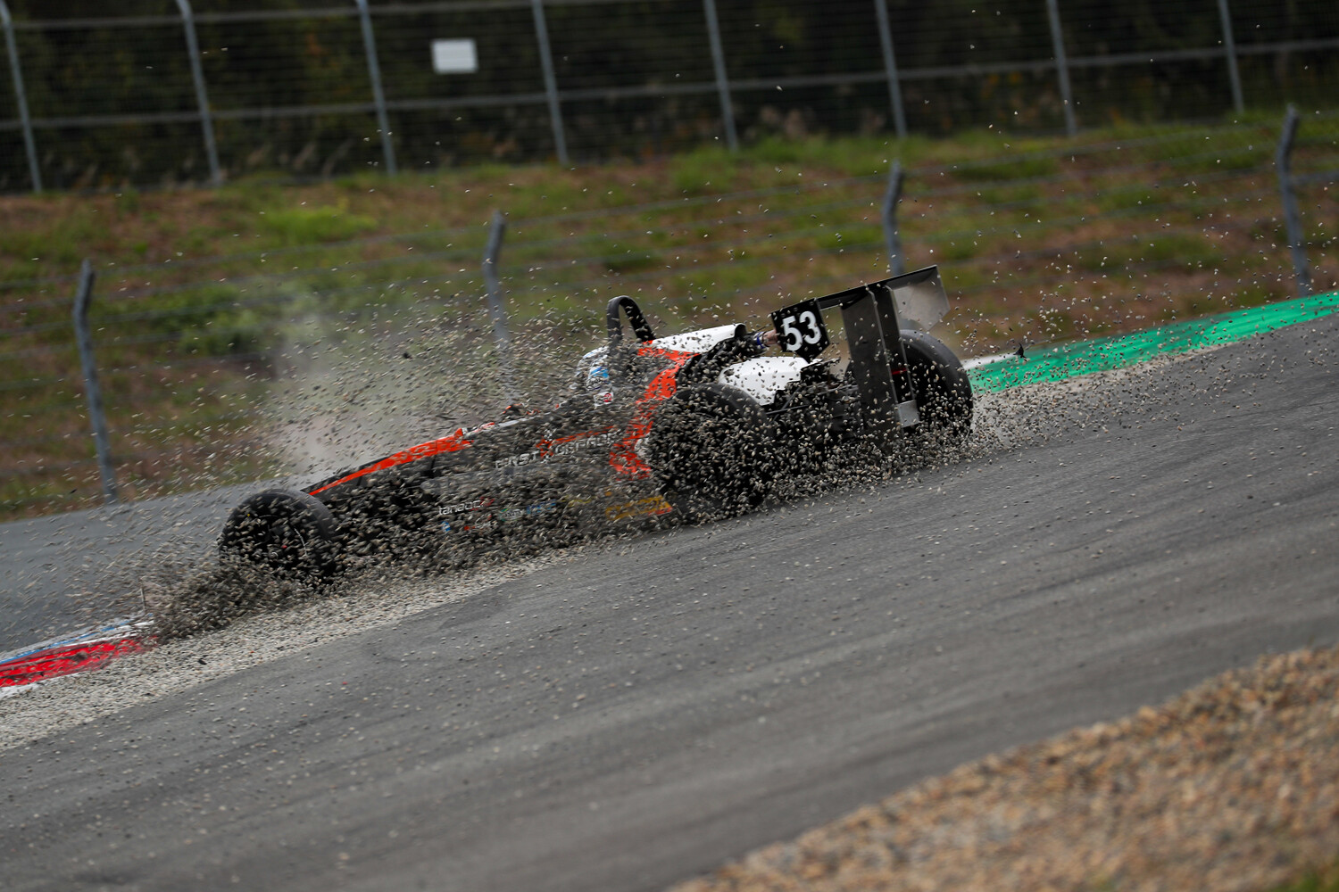 さらに後方では松原将也(ZAP MARUTOKU 10VED)~板倉慎哉(AMORE with Racing F)~杉田悠真(LAPS with REV RACING GARAGE)の8位グループと林零仁(KSJC KK-SII)~畠山~藤井翔大(Drago CORSE)の11位グループがそれぞれコンマ数秒のワンパックになってTGRコーナーに殺到する。8位グループのバトルは3ワイドでコカ・コーラコーナーへ飛び込むと立ち上がりで真ん中から先行した杉田がスピン、松原と板倉はそれぞれに回避する。オープニングラップに6番グリッドから8位まで順位を落としていた杉田は再スタートするも28位まで順位を落としてしまう。さらに後続の11位グループでも畠山がスピン。こちらも19位まで落ちるが、ジェントルマンクラストップはかろうじて死守、しかし1.2秒後方にクラス2位の秋山健也(スーパーウィンズKKS2)が迫る。
