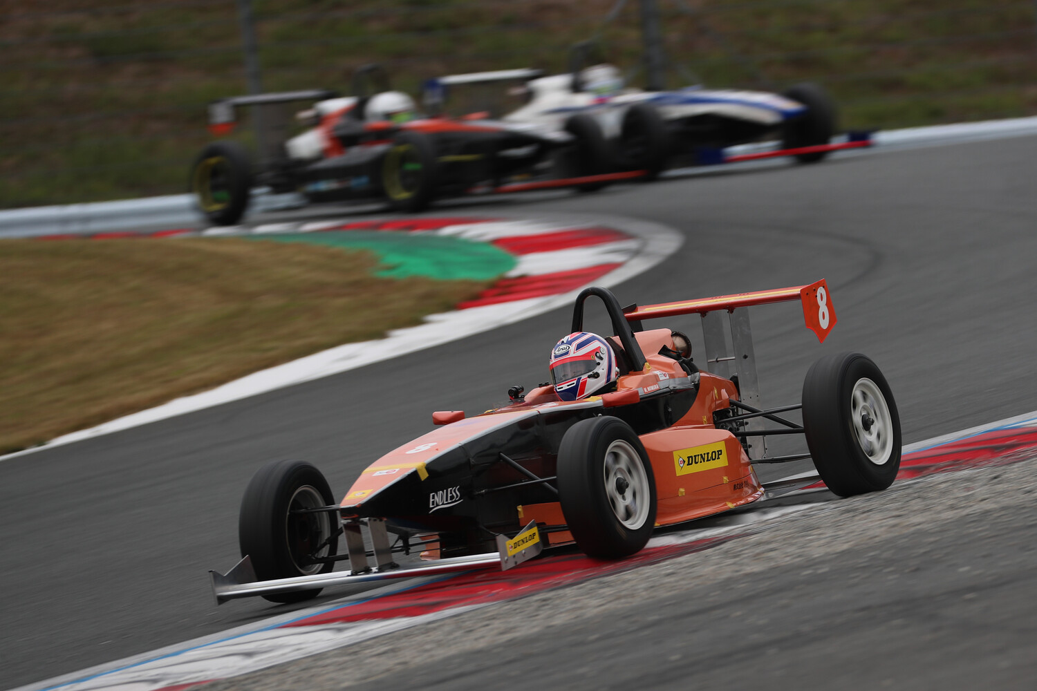 まず濱邊が切替の左サイドに出て横並びに。そして武者は箕浦の右サイド、ピットウォールぎりぎりから前を狙っていく。濱邊はストレートエンドまでにいったん2位に上がるが仕掛けが早すぎたかTGRコーナーへのブレーキングで切替にインから差されてしまう。武者はコーナーへのエントリーで箕浦を仕留めて4位を奪い返すと、さらに表彰台を目指して切替とバトルを続ける濱邊にコカ・コーラコーナーでインを差しに行く。ここに箕浦も参戦、出口でアウト側にコースアウトしながら武者の前に出る。テール・ツー・ノーズでシケインを抜けた切替と濱邊はそのままパナソニックオートモーティブコーナーを出てチェカードフラッグが待つフィニッシュラインへと加速。ぎりぎりまで切替のスリップストリームを使った濱邊が直前で抜け出し左サイドに並びかけると僅かに鼻先を前に出して2位に先着。切替は0.060秒の差で3位となった。優勝の吉田はこの2台のはるか前方、8.960秒の差で優勝した。