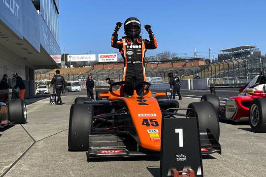 3位は、スタートでポジションを落としたものの、3周目に順位を回復した小松響(Rn-sports F111/3)。昨日はポールスタートから4位に沈んでしまったが、今日はきっちり表彰台に上った。