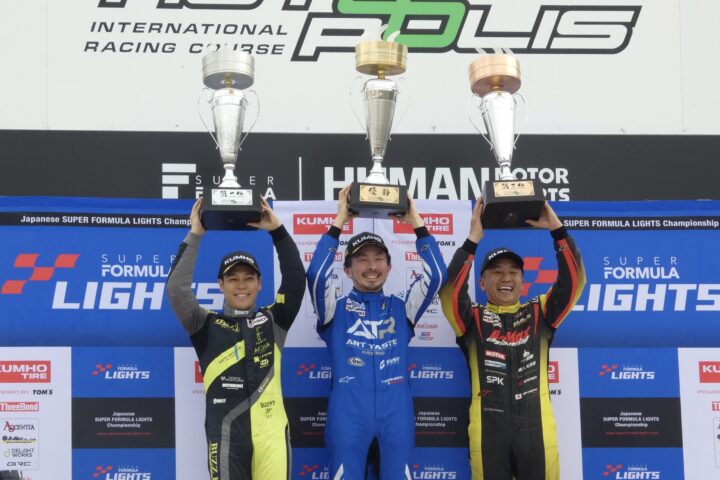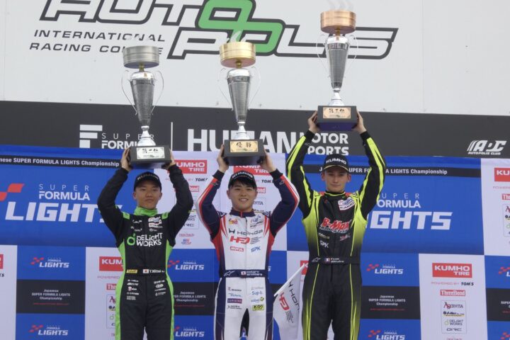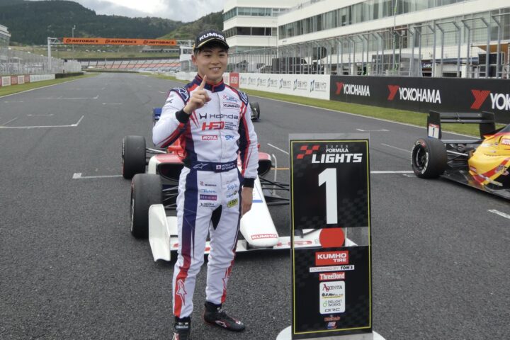 全日本スーパーフォーミュラ・ライツ選手権第4戦の決勝が、4月25日、オートポリスで行われ、新原光太郎(HFDP WITH B-MAX RACING)が、初ポールから危なげない走りで逃げ切り、嬉しい初優勝を飾った。