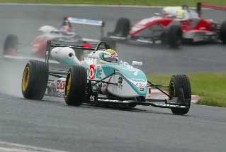 今日の鈴鹿は朝から雨が降り始め、F3第9戦の予選はウェットコンディションの中で 行われた。 横溝直輝が最初のアタックで出した2'17.458を各車とも中々上回れず、これがその ままポールタイムになるのかと思われたが、チェッカー間際にジェームズ・コートニ ーがセクター1のビハインドを130Rからシケインの区間で見事に挽回する走りで 2'17.308を叩き出して逆転、第9戦のポールポジションを奪い取った。 2位には横溝。3位には終盤目覚しいタイムアップがあったものの惜しくもトップに は届かなかった細川が入った。
