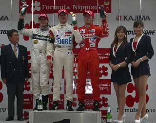 細川慎弥(優勝) 「ウォームアップで急にドライコンディションになったが、クルマのバランスが凄く 良かったのでそのままの状態でレースに臨んだ。スタートさえ決めれば、あとは抑え る自信があったので、スタートだけはミスしないようにと集中した。トップに立って からは、2戦目のこともあるし、一度気を緩めると元に戻らなくなるので、プッシュ し続けた」 パオロ・モンティン(2位) 「2位になれたことは嬉しく思っている。ジェームズがスタートできないのを見た ときはチャンスだと思った。今日の結果は嬉しいがジェームズまではまだ5ポイント もあるし、クルマの速さに関しては細川やジェームズに比べて納得できる状態では ないので、明日はもっと頑張る」 佐藤晋也(3位) 「スタートで失敗してしまった。右側のグリッドは路面が良くなかった。一つでも 上を狙おうとプッシュしたけど、届かなかった。 でも片岡やコートニーの追い上げも厳しかったので、今迄で一番嬉しい表彰台です」