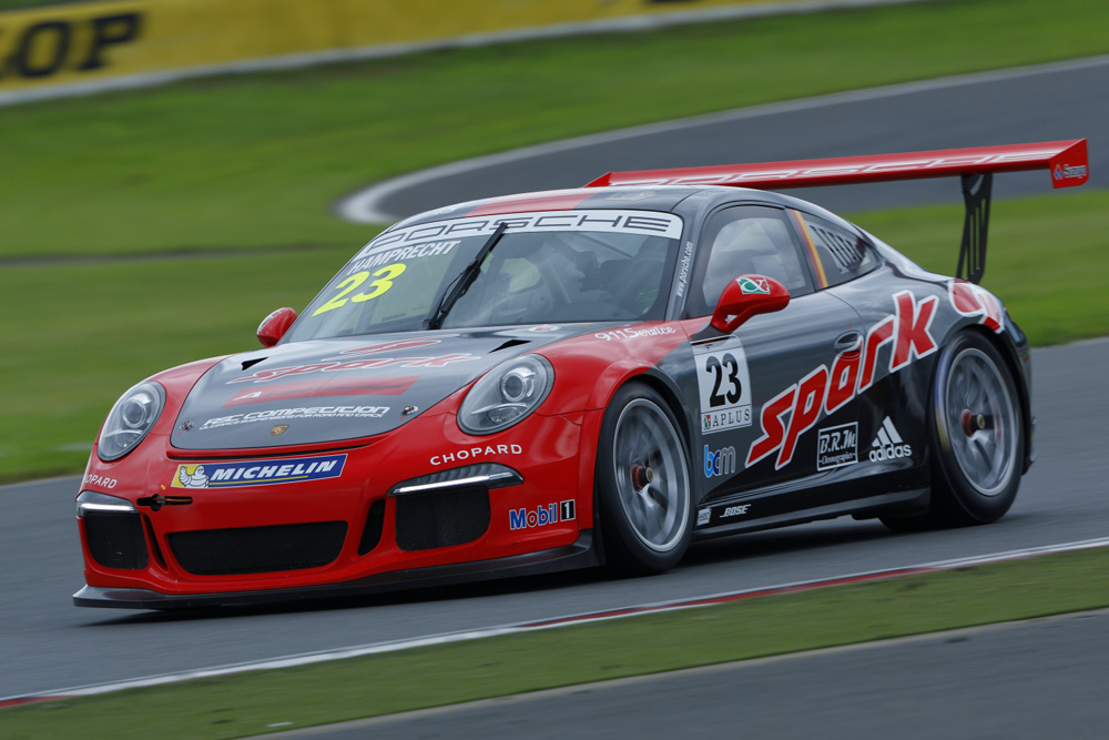 そして早い段階で#23のリザーブドライバーとして、今回のレースに参戦するドイツ人のフィリップ・ハンプレヒトが1分43秒台をマークしてトップに。#23 ハンプレヒトはPCCA(ポルシェ カレラカップ アジア)に参戦中のドライバーで、PCCJは第3-4戦の富士大会に参戦して2戦連続でポール・トゥ・ウインを飾った実力者だ。ラストアタックでさらにタイムを更新して1分43秒490でポールポジションを獲得した#23 ハンプレヒトは「最後に投入した2セット目のニュータイヤを使い切れれば、もう少しタイムを縮められたはずです」と、トップタイムをマークしながらも悔しさを滲ませていた。2番手タイムは、同じくPCCAに参戦中で今回はスポット参戦となる#15 タナルト・サティエンティラクルがマーク。「あと一歩攻め切ることができず、ハンプレヒトのタイムを上回れませんでした。決勝では、彼を打ち破りたいですね」と、午後のレースでのリベンジを誓っていた。