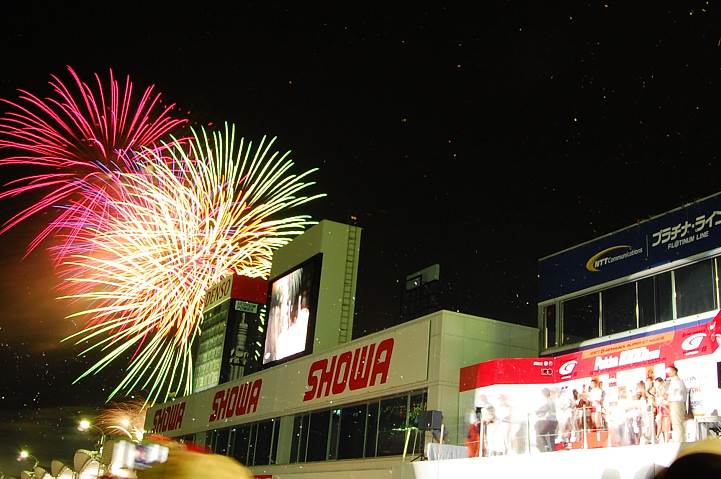 勝者を称える花火が鈴鹿の遅い夏に終わりを告げる