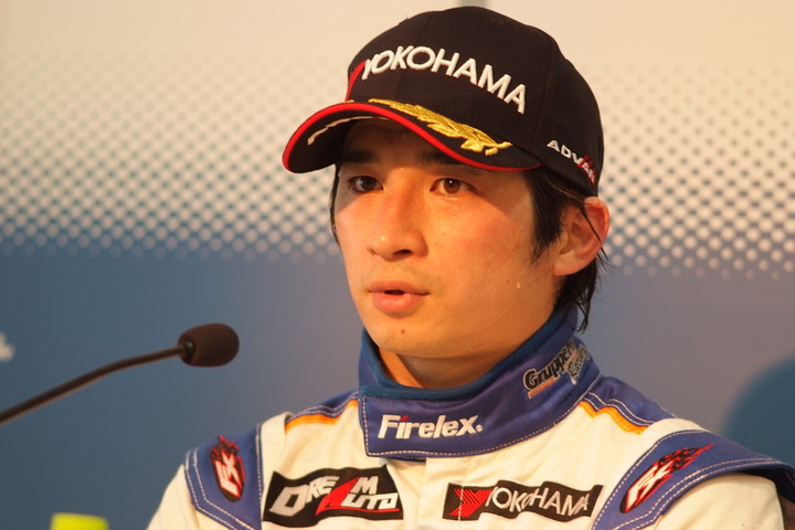 決勝記者会見: 決勝記者会見: Nクラス2位の山口大陸(TAIROKU EXCEED)