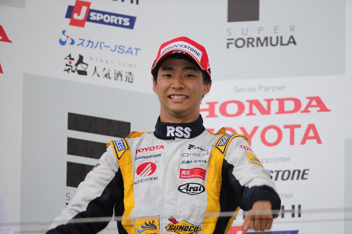 表彰式で決勝2位の平川亮(ACHIEVEMENT Team KYGNUS SUNOCO SF14)