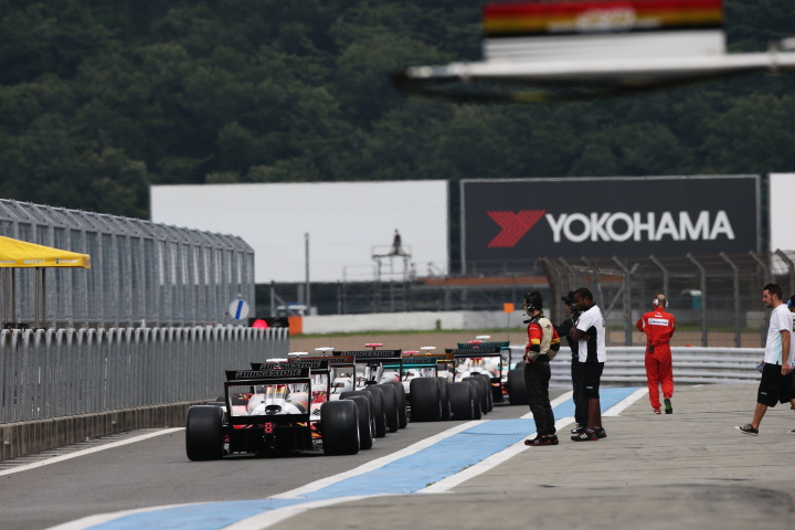 ノックアウト予選: Q1に向けてピット出口で並ぶマシンたち