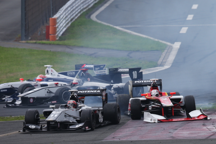 決勝レース: スタートでリアルの2台が接触、これに中山友貴が巻き込まれる
