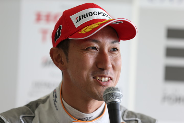 予選記者会見: ポールポジションの石浦宏明(P.MU/CERUMO・INGING)