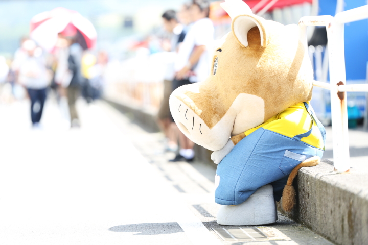 ピットウォーク: 暇なのか座っちゃったあか牛くん