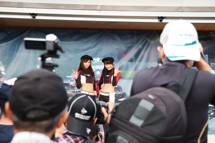 SFステージにレースクイーンが登場。撮影に夢中になるファン