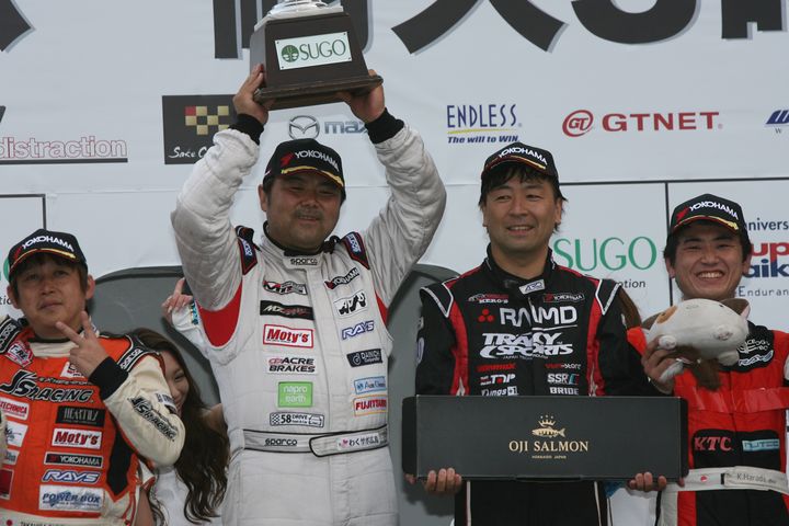 表彰式: ST-5クラス優勝の村上博幸/筒井克彦組(村上モータースMAZDAロードスターND)