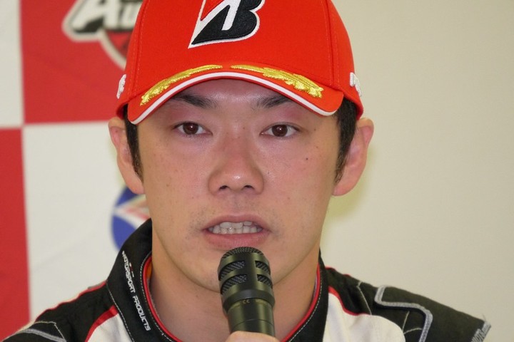 決勝記者会見: GT300クラス優勝の嵯峨宏紀(apr)