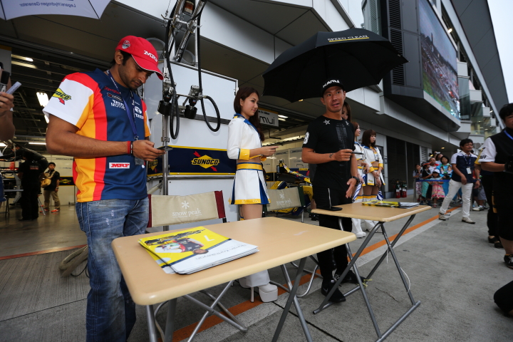 キッズピットウォーク: ナレイン・カーティケヤンと小林可夢偉(SUNOCO TEAM LEMANS)