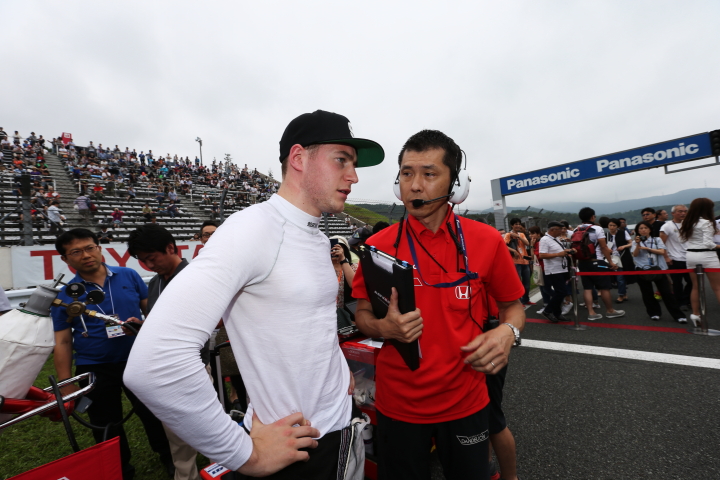 スタート進行: ストフェル・バンドーンと杉崎公俊エンジニア(DOCOMO TEAM DANDELION RACING)