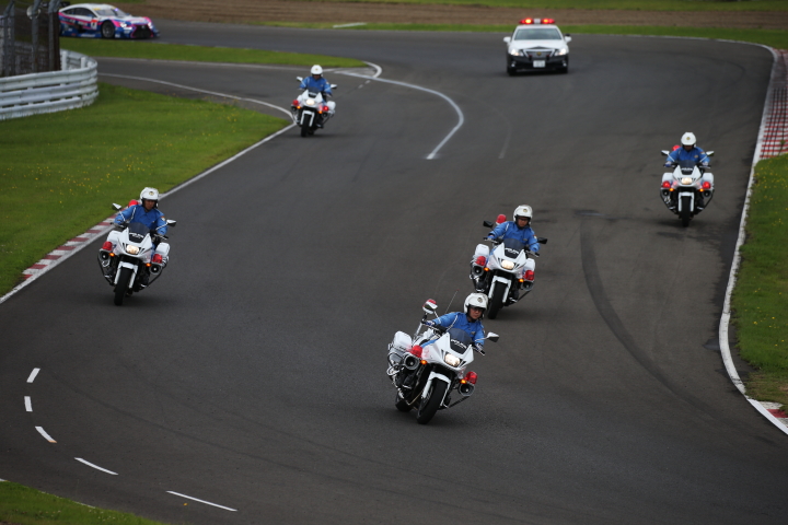 決勝レース: 白バイ隊の先導でローリングラップが始まった