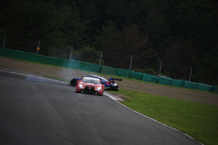 決勝レース: 馬の背で石浦宏明と小暮卓史が接触。小暮はスピンして石浦がGT500クラスのトップに立つ