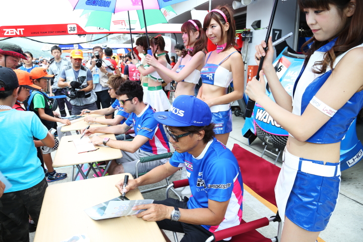 ピットウォーク: サインをする脇阪寿一監督(LEXUS TEAM LEMANS WAKO'S)